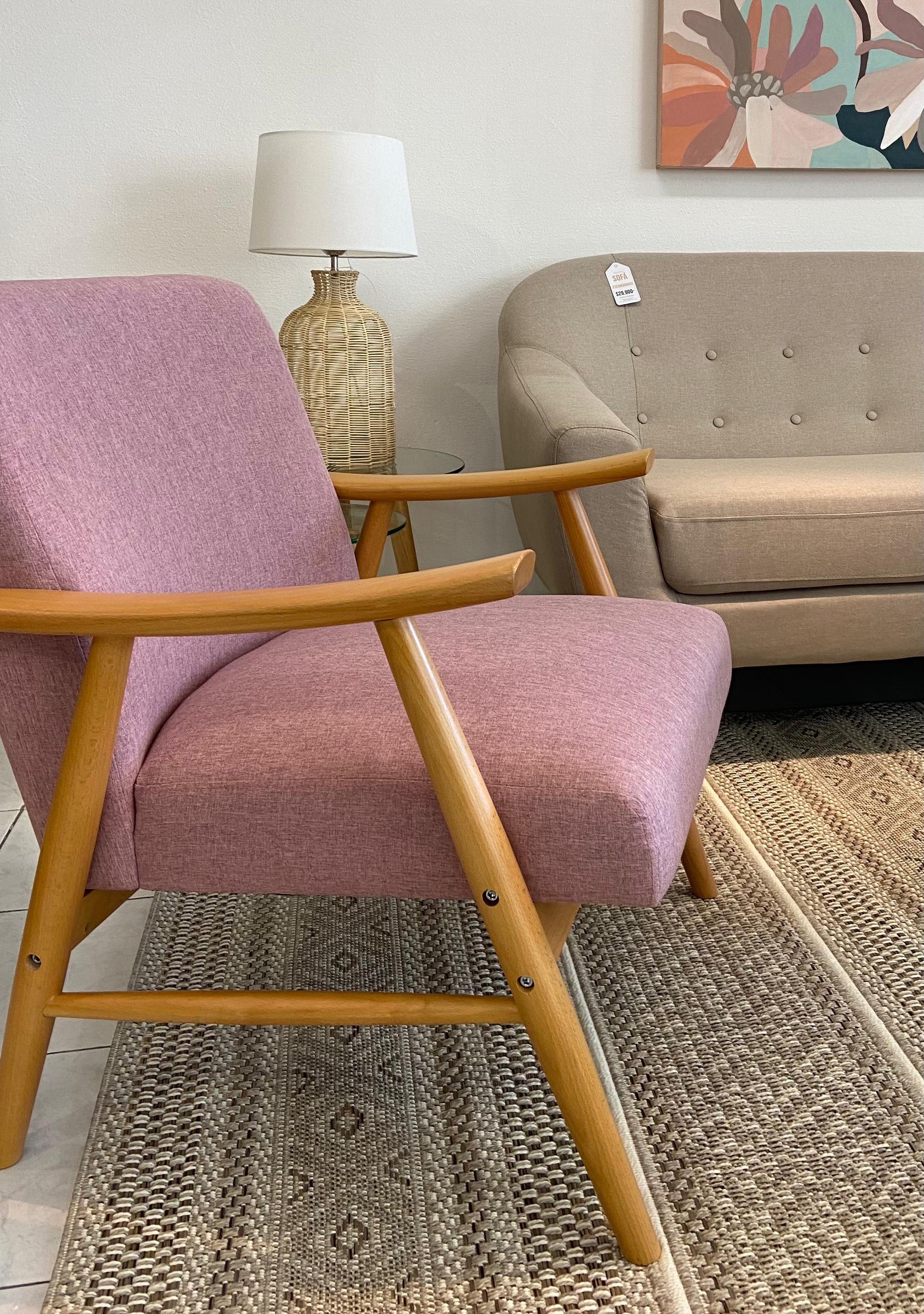 Butaca Ania, importada. De estilo contemporáneo y cálido, combina comodidad y diseño elegante. La estructura en madera la hacen ideal para living, sala de lectura o espacios de relax.