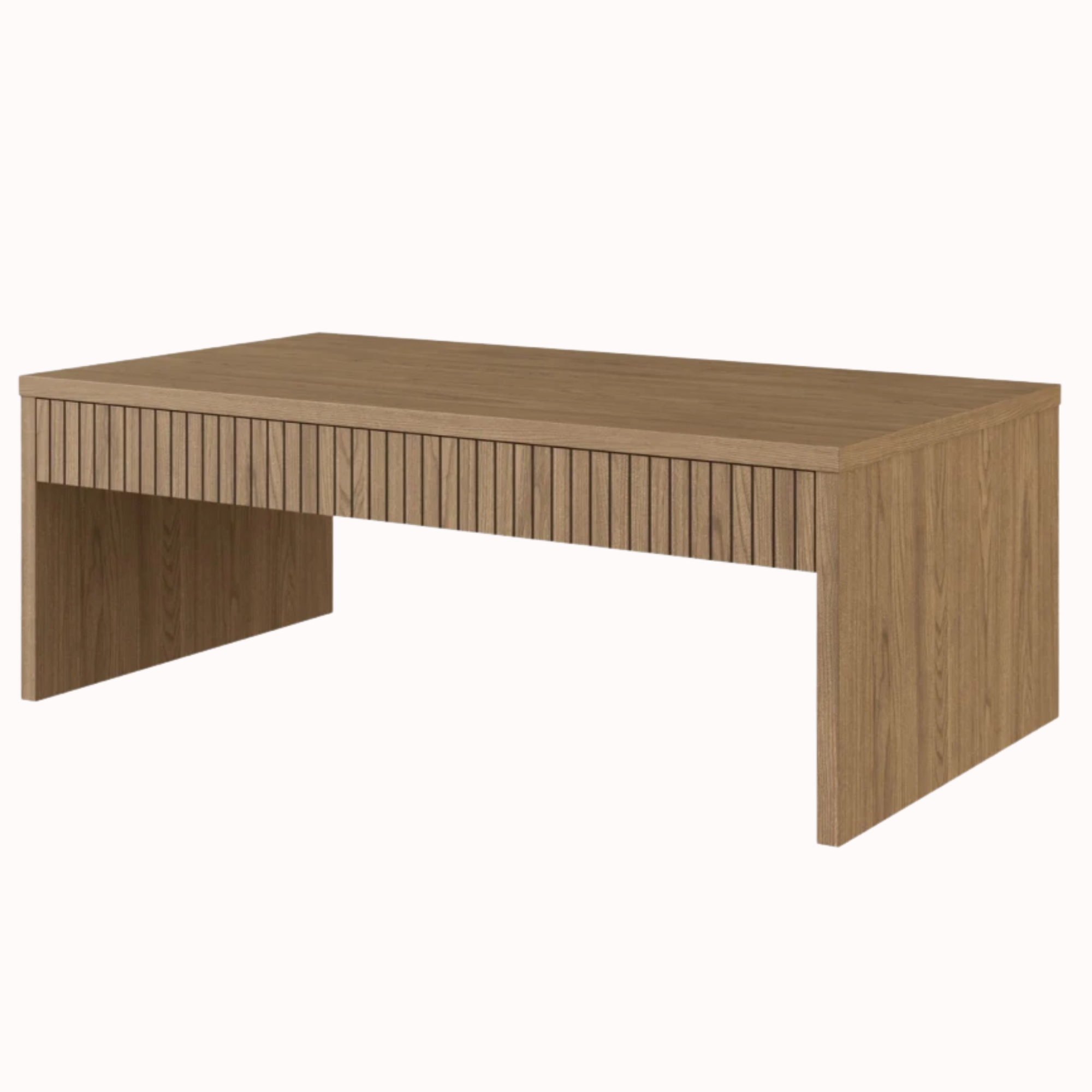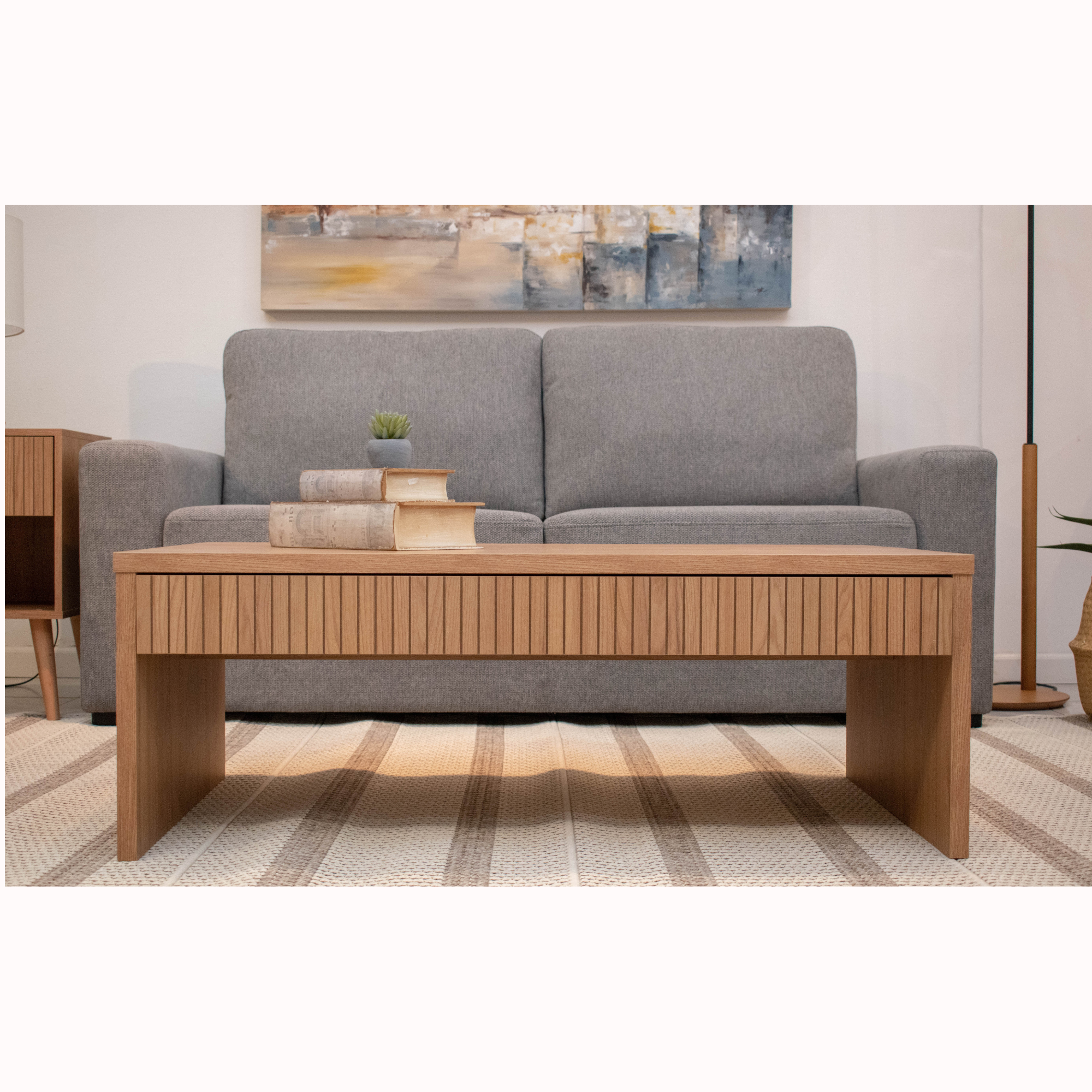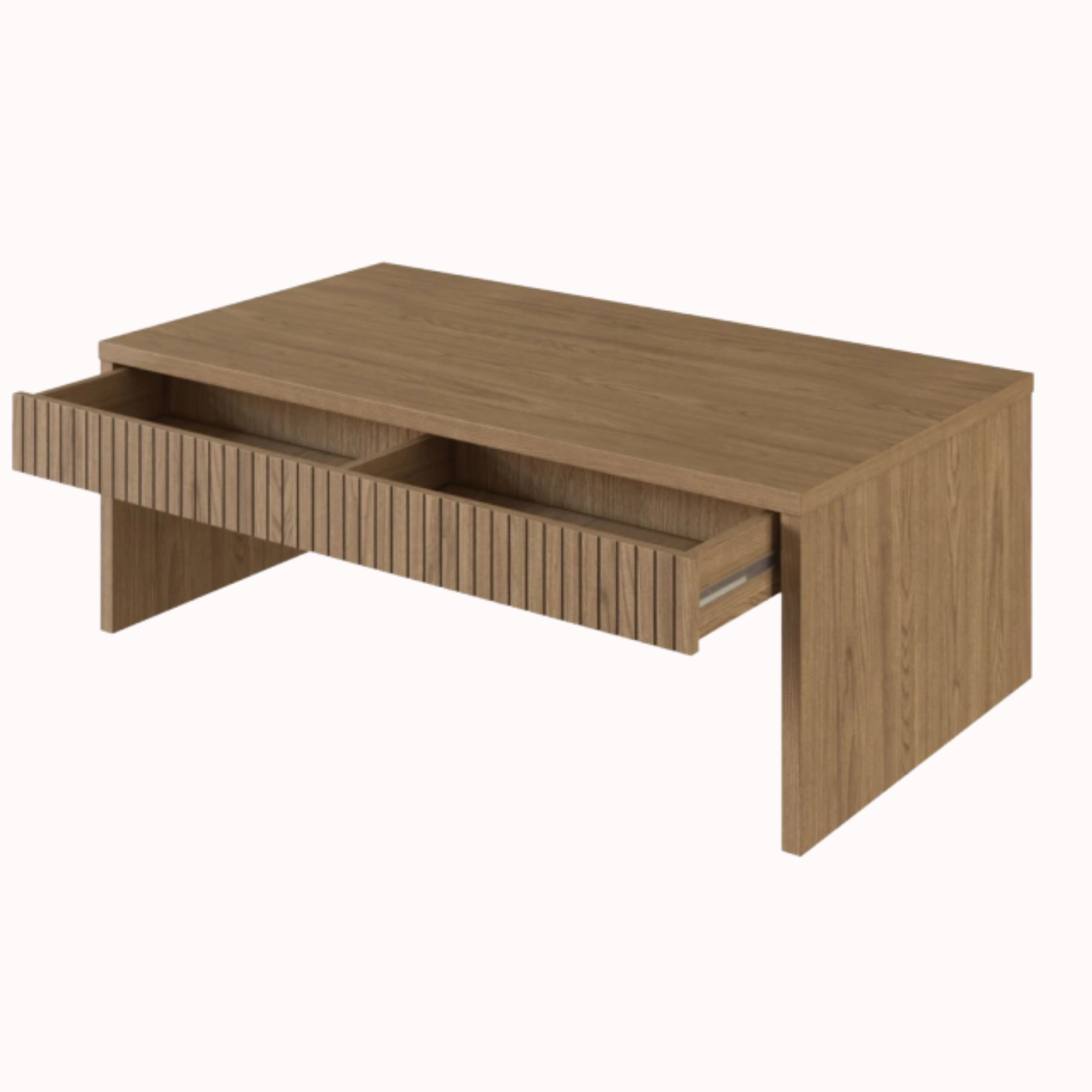 Mesa de Living Dinamarca 2, con cajones de diseño moderno y funcional. Mesa rectangular realizada en MDF laminado de muy buena calidad, ideal para aportar practicidad y estilo contemporáneo al ambiente.