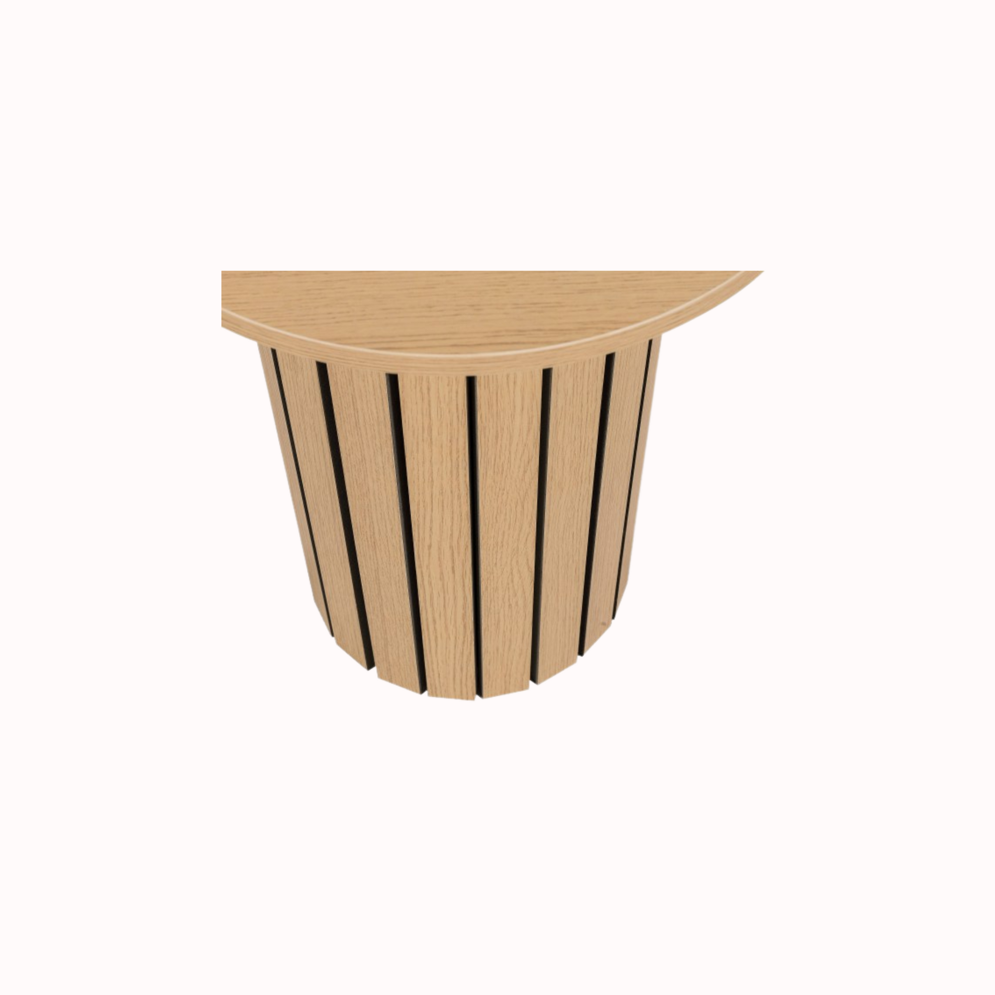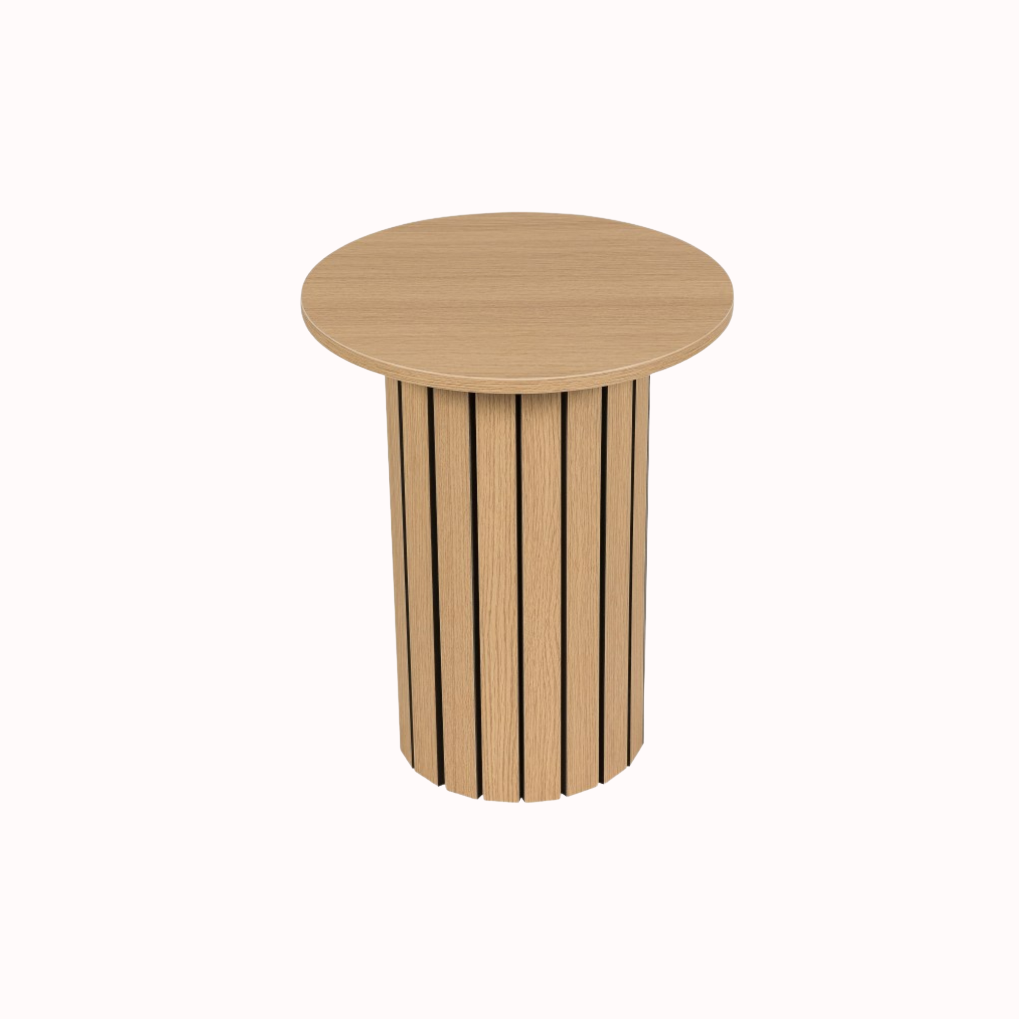Mesa Centro Lagos, redonda y funcional, realizada en melamínico tipo roble.