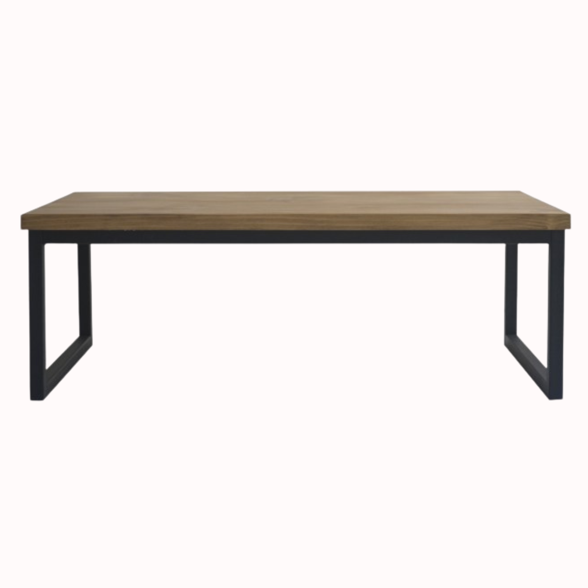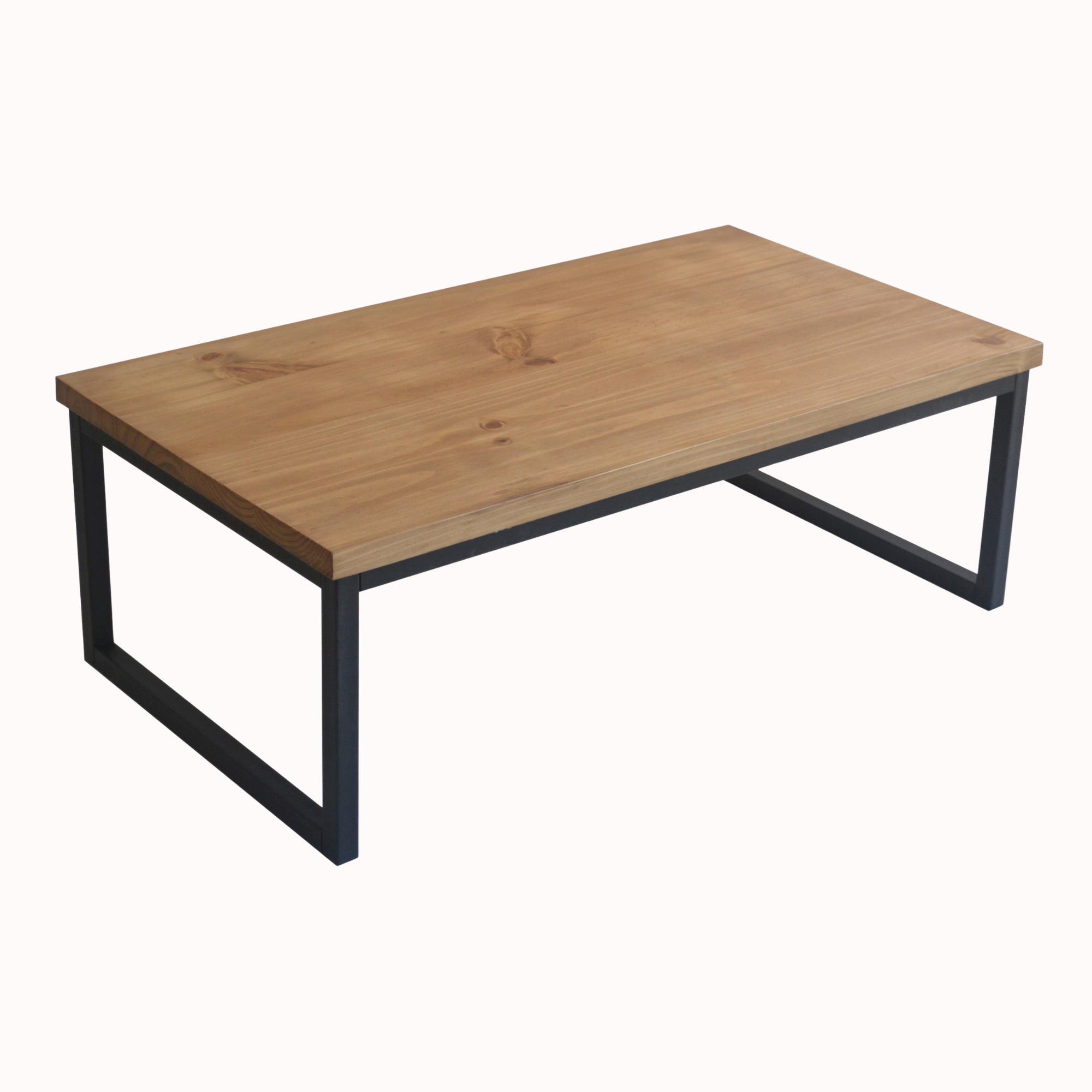 Mesa Centro Industrial, con patas de hierro y tapa en pino americano. Se fabrica a medida, combinando funcionalidad y estilo rústico.