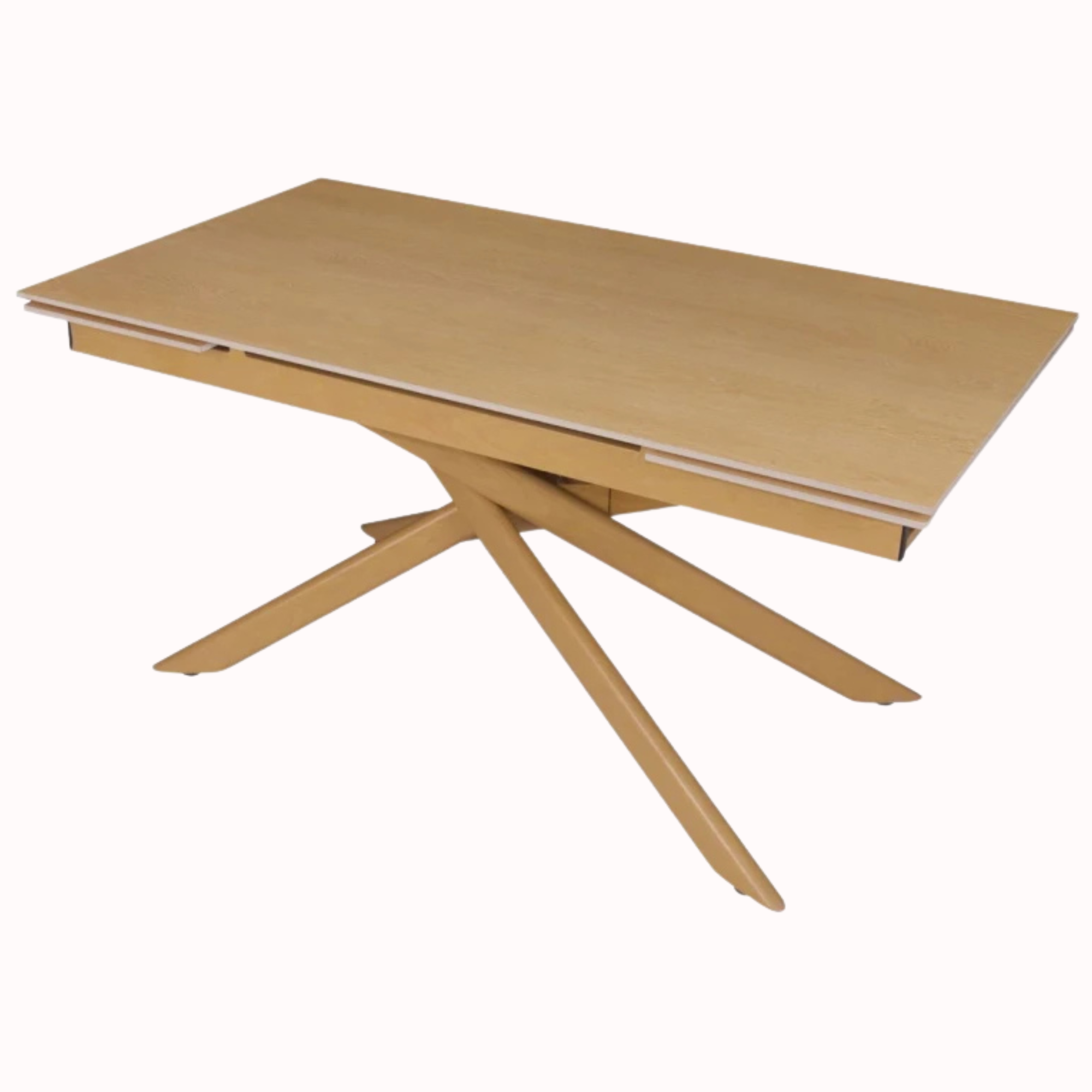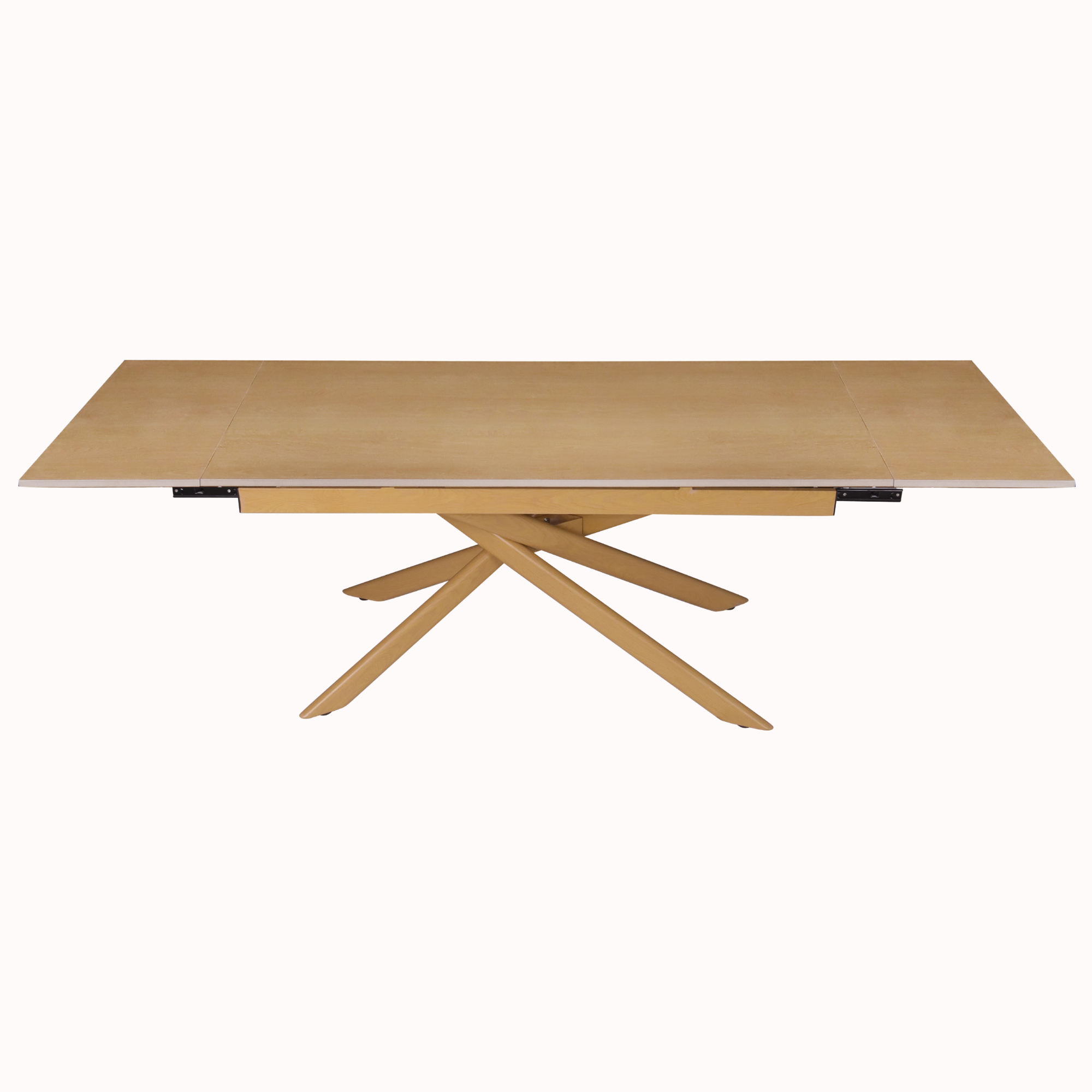Mesa de comedor extensible, práctica y versátil: pensada para 6 comensales y con capacidad de hasta 10 al extenderse. Su tapa de cerámica ofrece una superficie altamente resistente, fácil de limpiar y perfecta para el uso diario. La base con patas entrelazadas aporta estabilidad y un diseño moderno que realza cualquier ambiente.