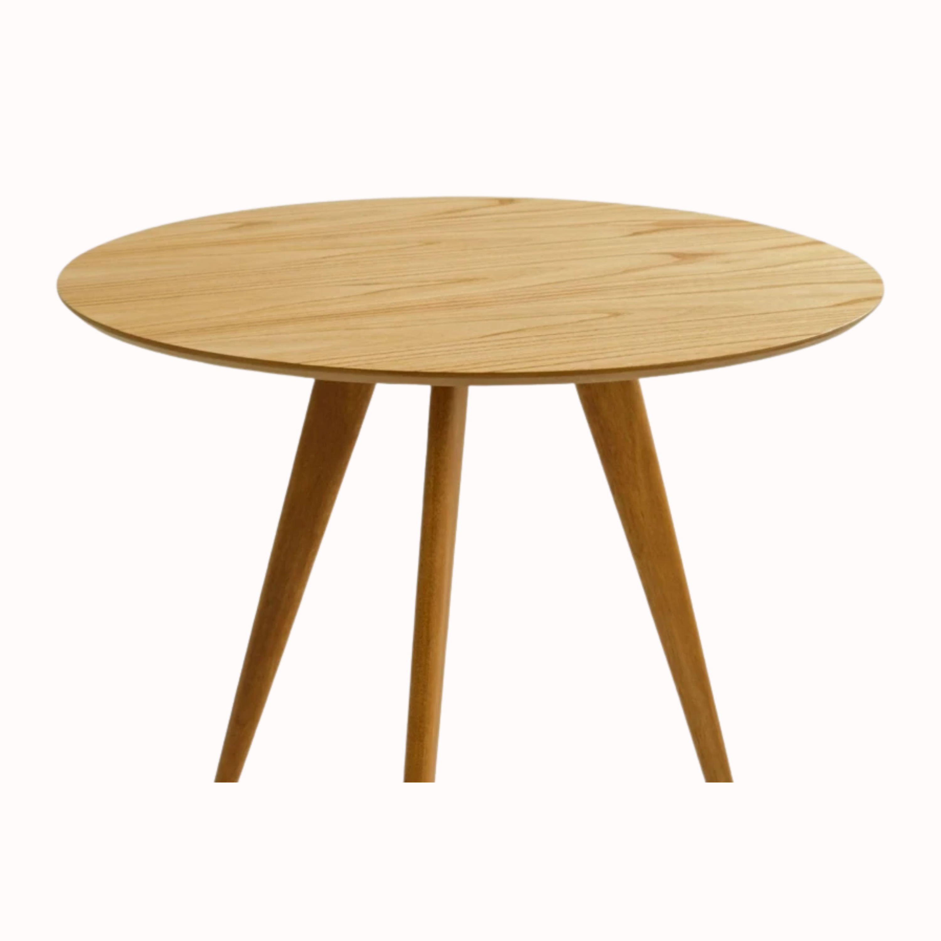 Mesa de comedor redonda con base de 3 patas centrales, ideal para 3 personas. Su diseño compacto y estilizado la hace perfecta para espacios pequeños, combinando funcionalidad y estilo sin sacrificar comodidad.