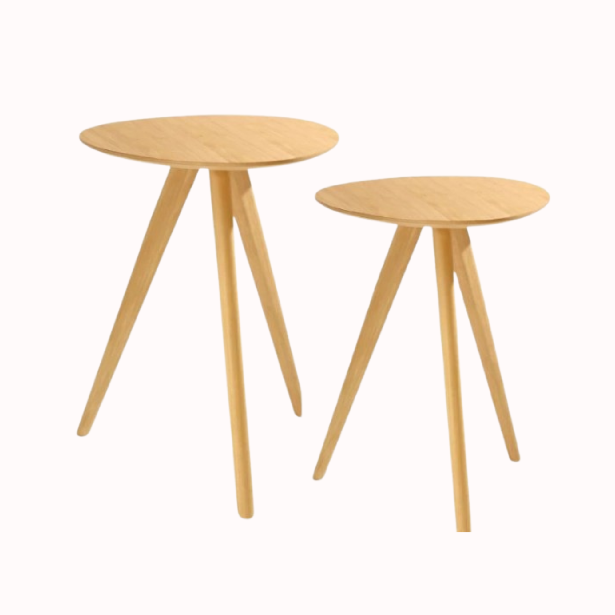 Set de Mesas Auxiliares Orla, de diseño retro con forma irregular. Con patas y tapa en madera, aportan calidez y originalidad al espacio.
