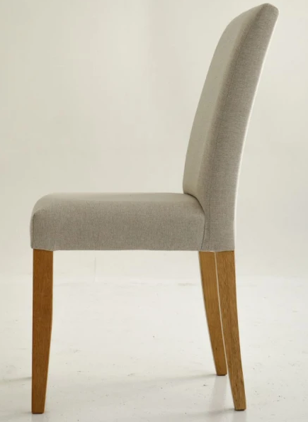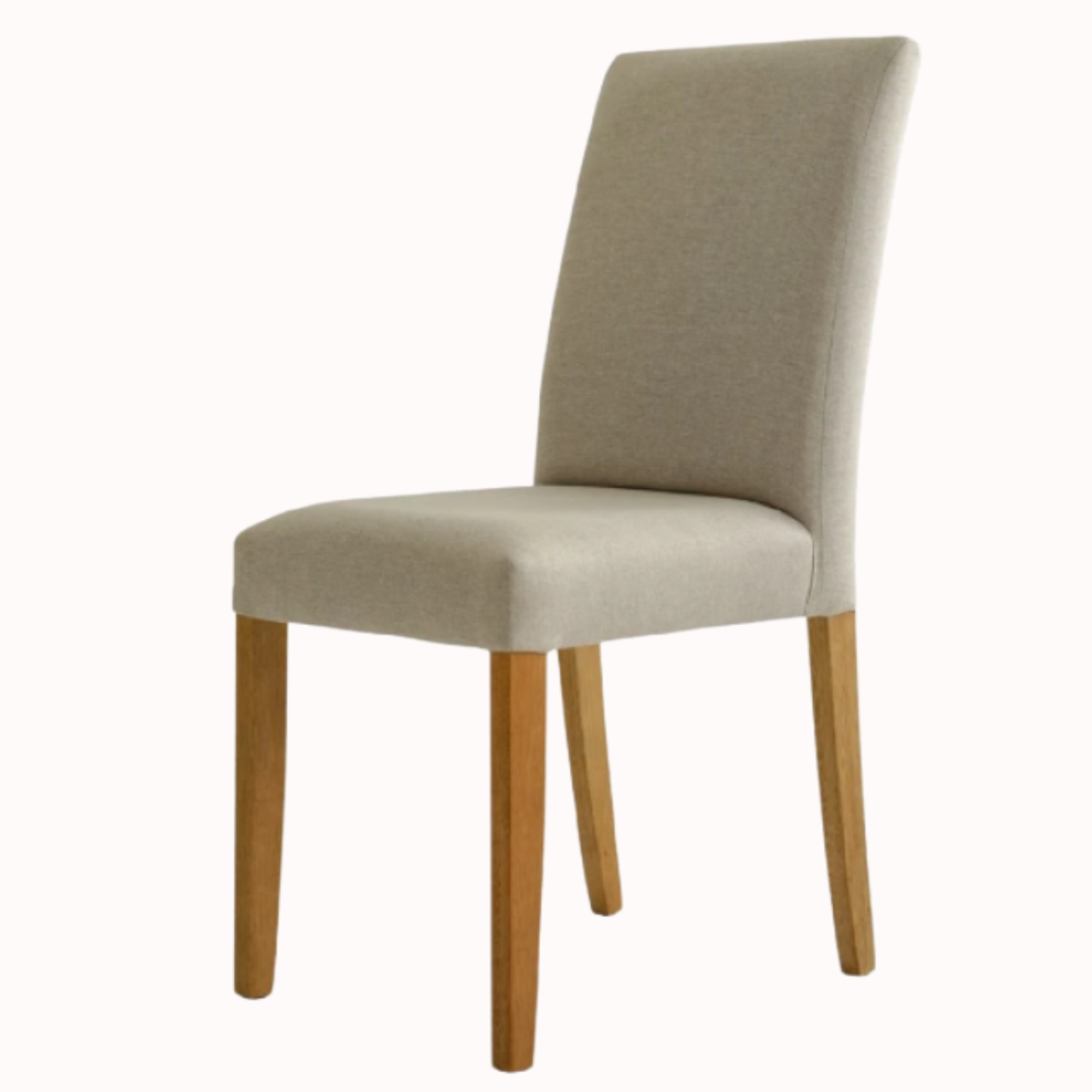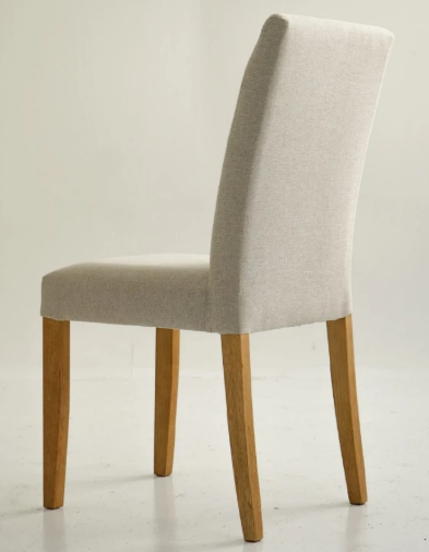 La silla Bari presenta un diseño clásico de líneas rectas, fácil de combinar con distintos estilos de mesa y ambientes. Su tapizado en tela lavable en tono beige la hace práctica y versátil, ideal para comedores o espacios donde se busca sencillez y confort.