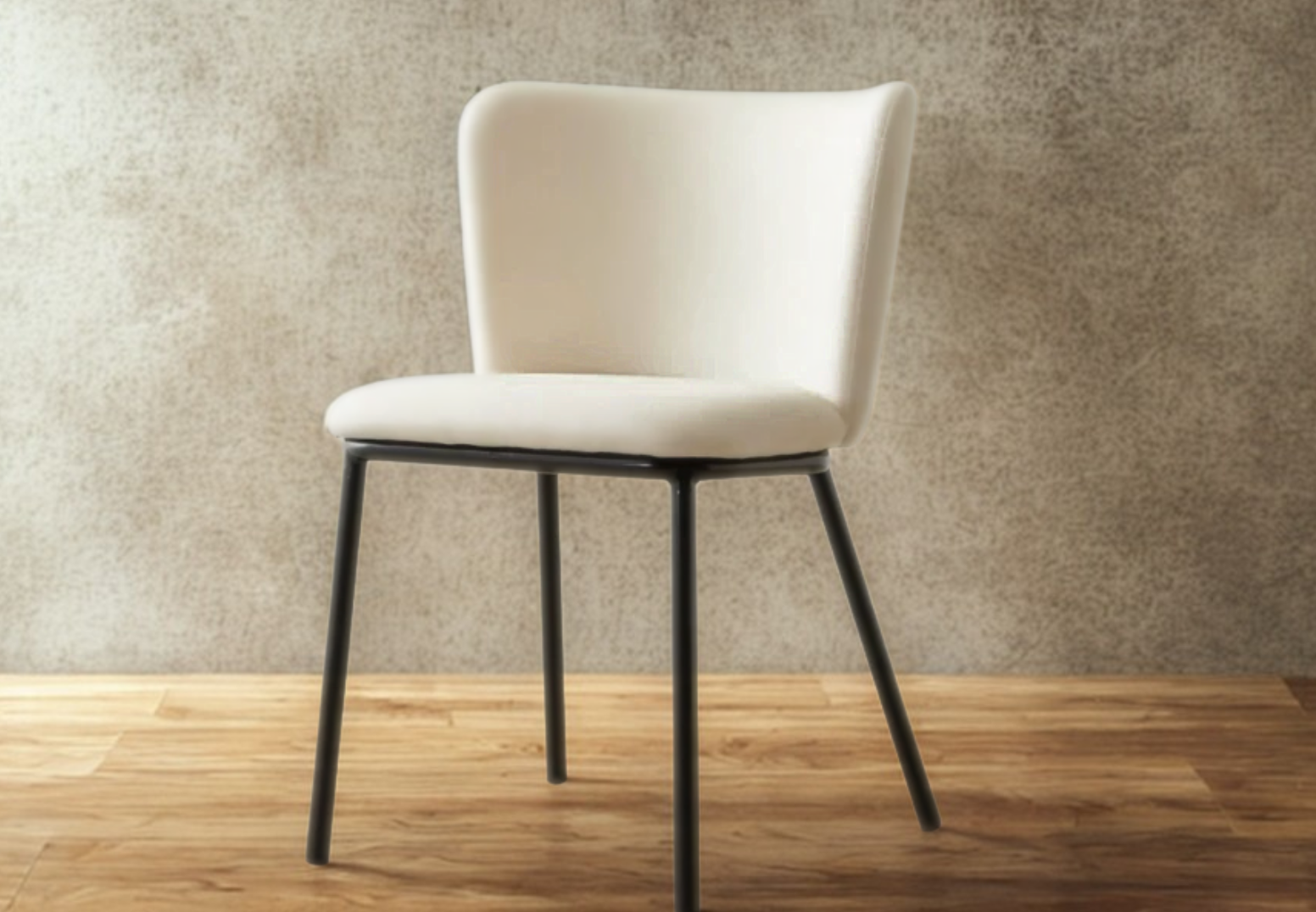 La silla Chicago combina diseño moderno y practicidad, con tapizado en tela lavable que facilita el mantenimiento. Sus patas de hierro en color negro aportan un toque contemporáneo y resistente, ideal para comedores o espacios de estilo actual.