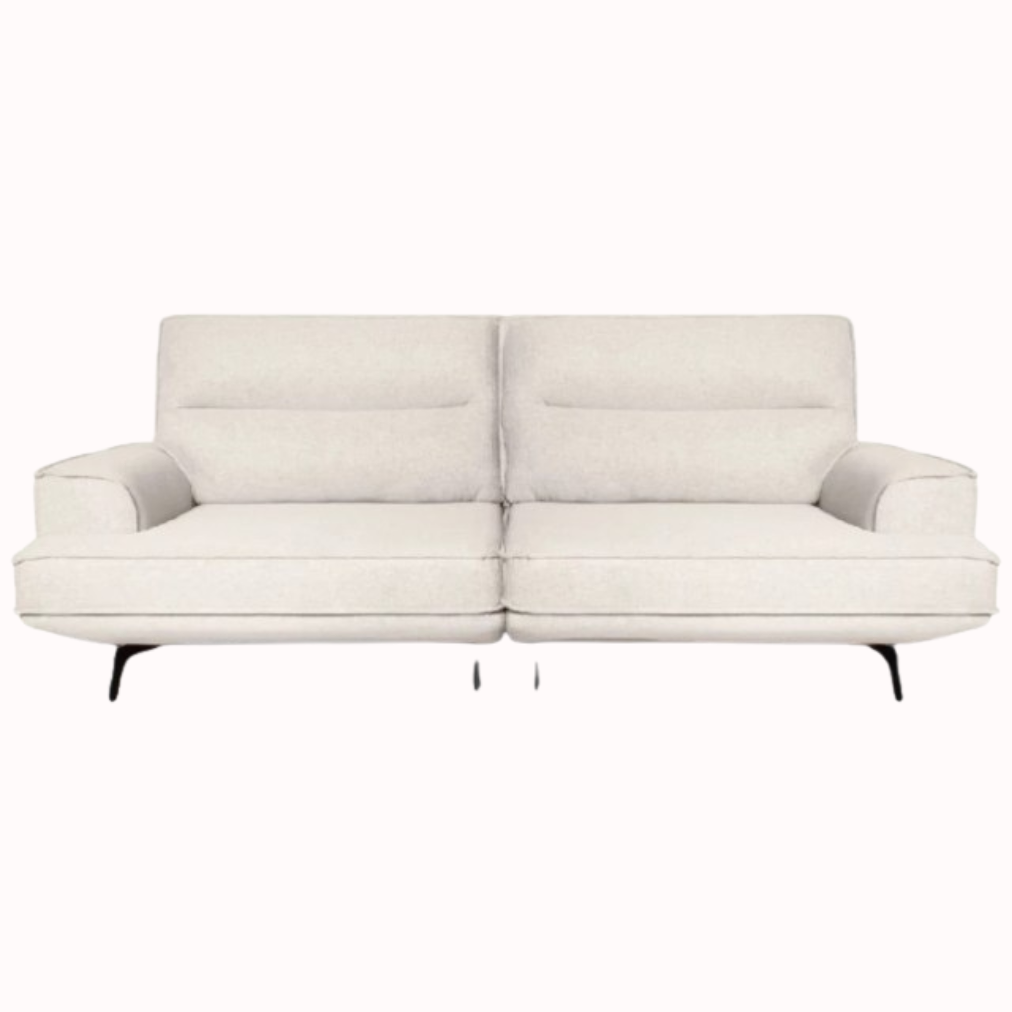 Sofá de 3 cuerpos con líneas modernas y respaldo con riñonera para mayor confort. Incorpora resortes zig-zag y plancha soft, brindando un asiento firme y confortable. Tapizado en tela rústica waterproof que repele líquidos y manchas, ideal para un uso diario sin preocupaciones.