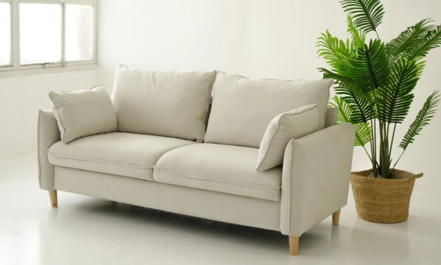 Su estructura con resortes asegura un soporte firme y duradero, almohadones de respaldo desenfundables y posa brazos finos que permiten gran amplitud de asiento.