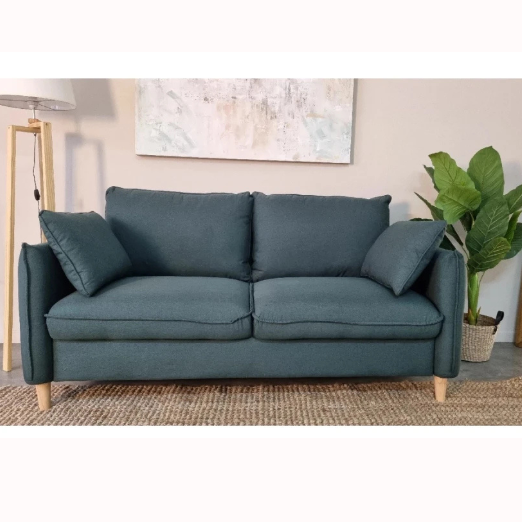 El Sofá Mila es un modelo importado que destaca por su diseño minimalista y acogedor. Con unas dimensiones de 1.80 x 0.88 mts., ofrece el equilibrio perfecto entre tamaño compacto y comodidad. Su estructura con resortes asegura un soporte firme y duradero, mientras que los amplios cojines de asiento y respaldo brindan una sensación envolvente. Tapizado en tela color beige claro, combina fácilmente con distintos estilos de decoración, aportando luminosidad y calidez al ambiente. Sus patas en madera natural elevan sutilmente la pieza, otorgándole ligereza visual y un toque nórdico.