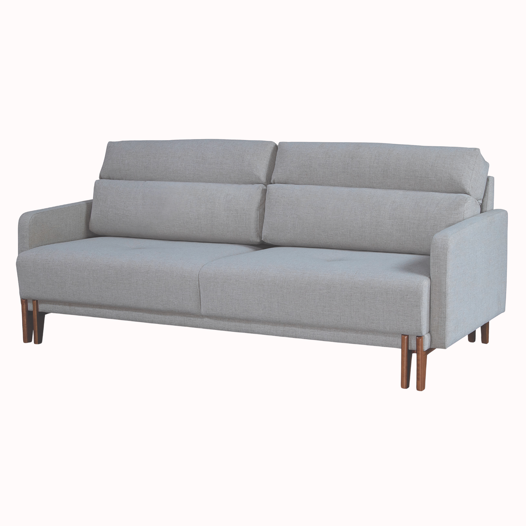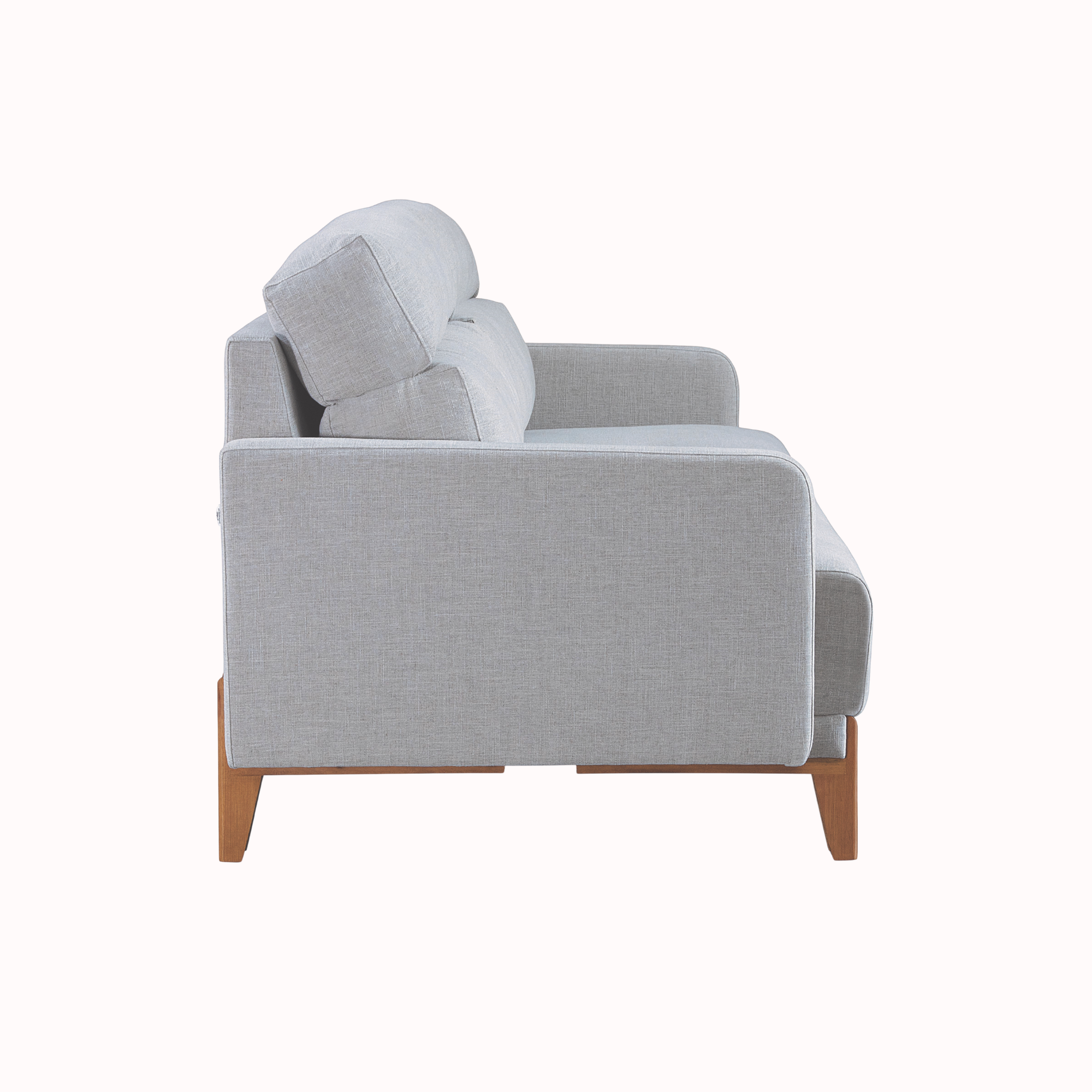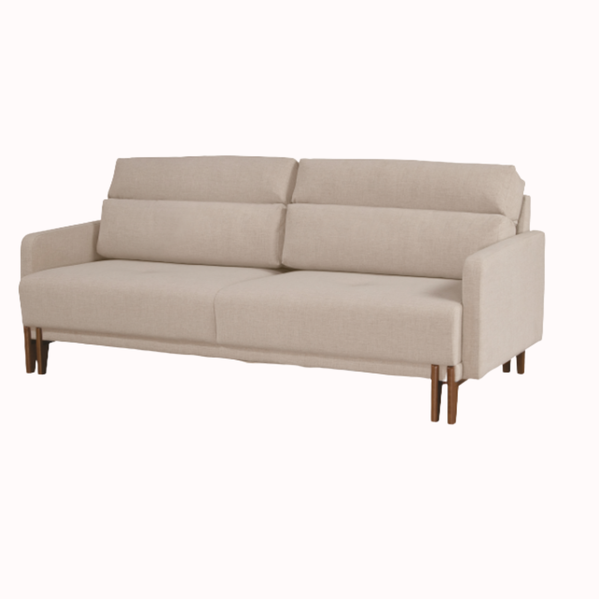 Sofá de 3 cuerpos muy cómodo, con doble pata de madera y riñonera integrada en el respaldo para mayor confort. Brazos finos que permiten aprovechar al máximo la capacidad del asiento, combinando diseño y funcionalidad.